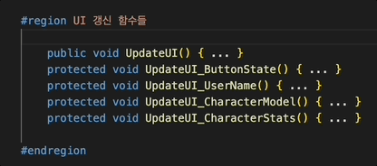 이런 식으로 #region ~ #endregion으로 묶어줍니다.