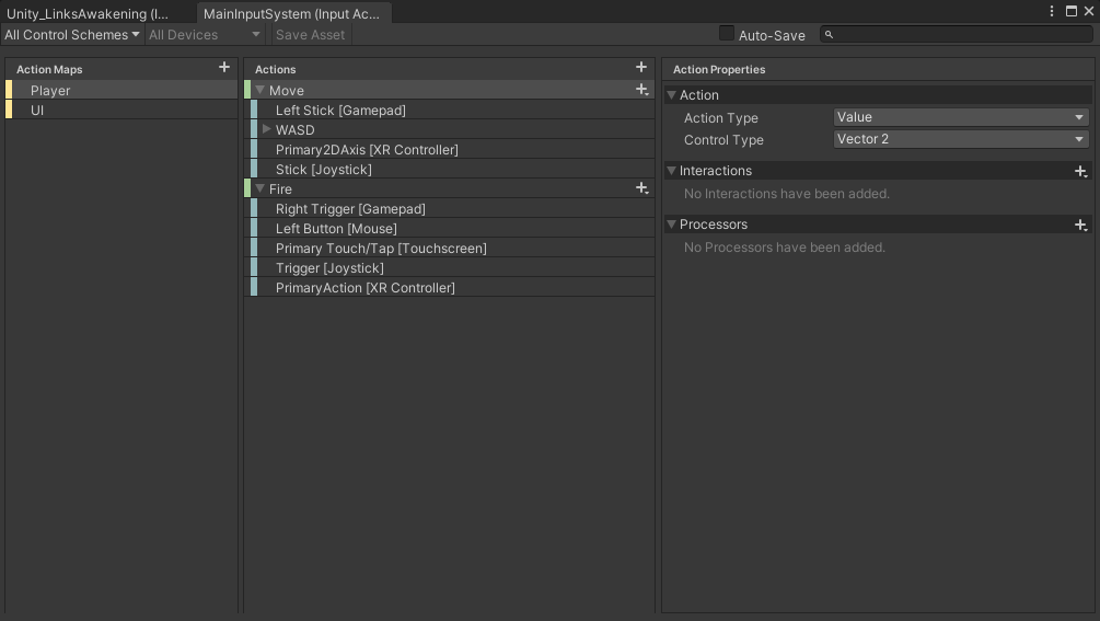 (처음 생성시 Move, Look, Fire 액션이 생성되는데 Look만 지웠습니다)