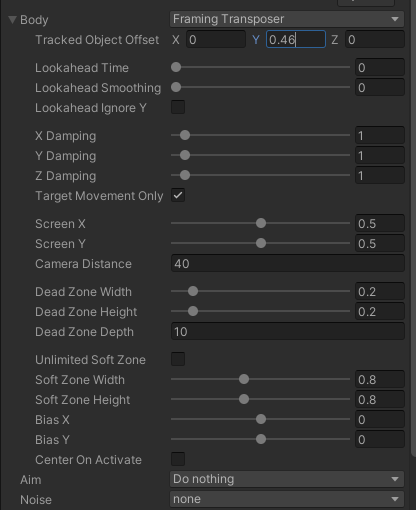Framing Transposer으로 설정해주면 꿈꾸는 섬에서 보았던 카메라와 비슷하게 구현이 가능합니다.