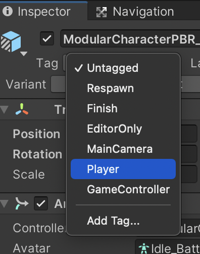 캐릭터의 태그를 Player로 맞춰주었습니다.
