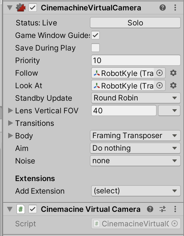 Cinemachine Virtual Camera의 Follow, LookAt 프로퍼티가 Transform을 참조하고 있어서 Dummy Transform을 만들어서 설정하도록 구현했습니다.