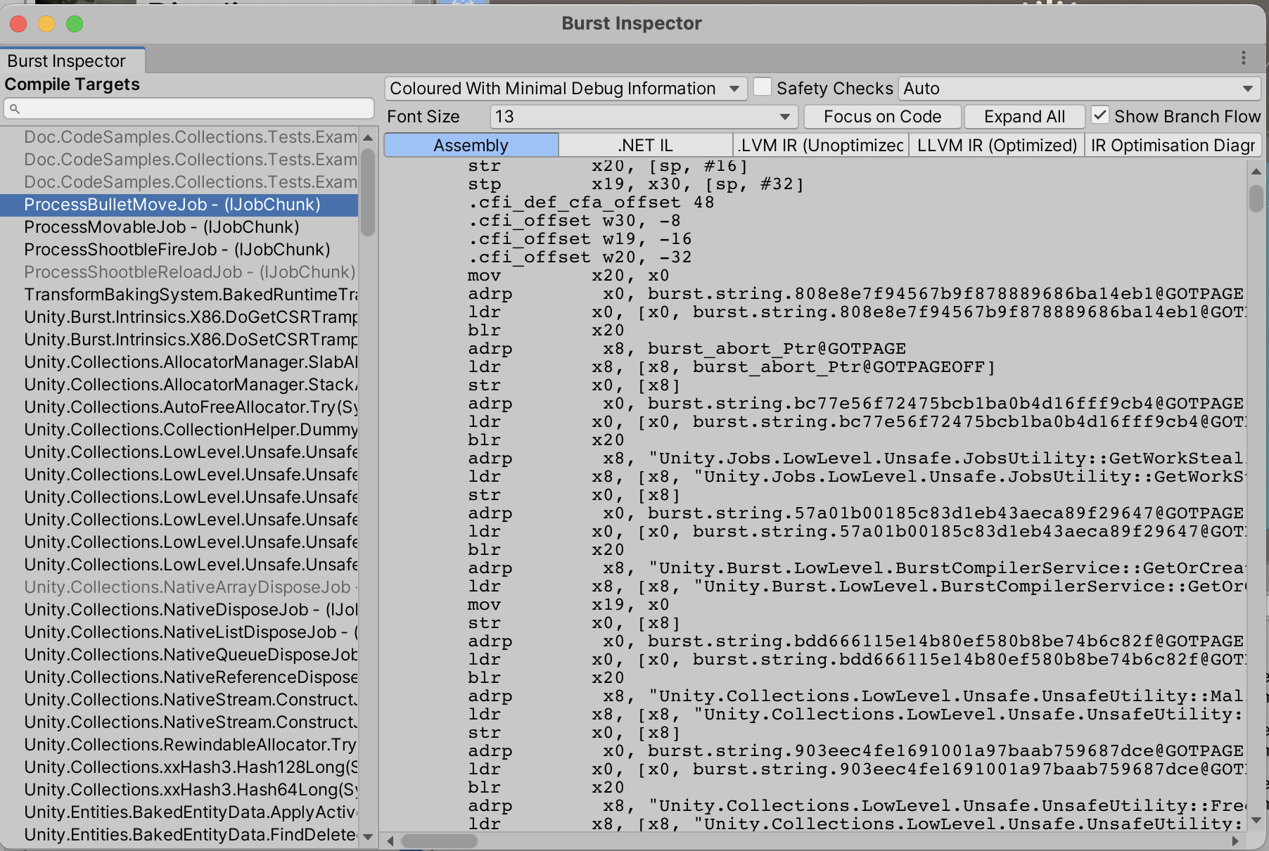 Burst Inspector로 변환된 코드를 확인 가능한데, 어셈블리는 하나도 몰라서 봐도 알 수가 없네요.