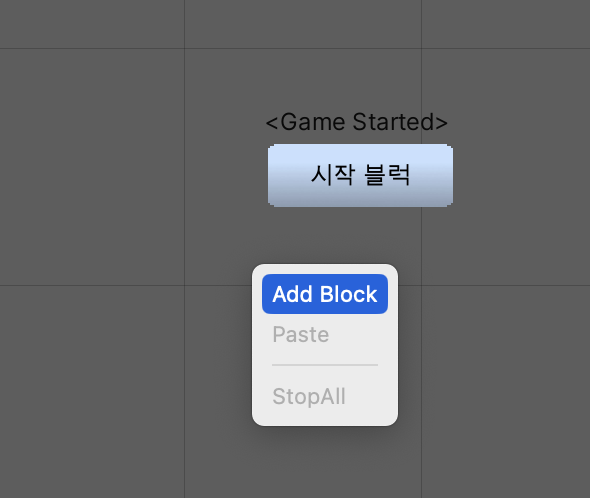 Flowchart Window에서 마우스 우클릭하여 새로운 블럭을 추가합니다.