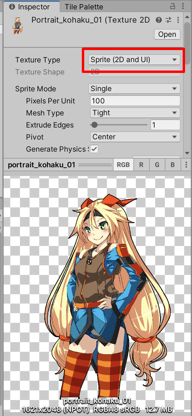 저는 샘플 이미지로 무료로 공개되어 있는 유니티짱 포트릿을 사용했습니다.