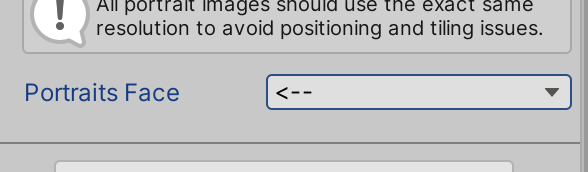Character 가장 하단에 보면 Portraits Face가 있는데, 스프라이트가 왼쪽을 바라보면 왼쪽, 오른쪽을 바라보면 오른쪽을 선택해 줍니다.