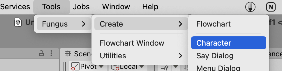 상단메뉴 [Tools] → [Create] → [Character]를 통해 캐릭터를 추가해 줍니다.