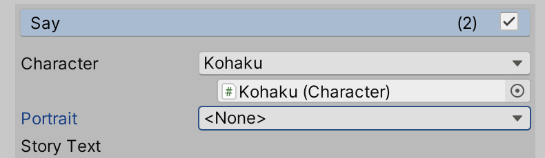좀 전에 Say Command에 Portrait값을 None으로 변경해 주었습니다.