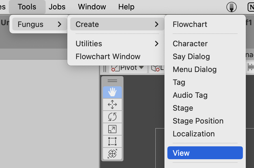 상단메뉴 [Tools] → [Create] → [View]를 통해 캐릭터를 추가해 줍니다.