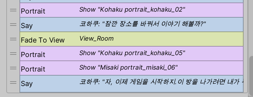 조금 자연스럽게 배경을 바꾼 이후에 대화를 추가해 주었습니다.