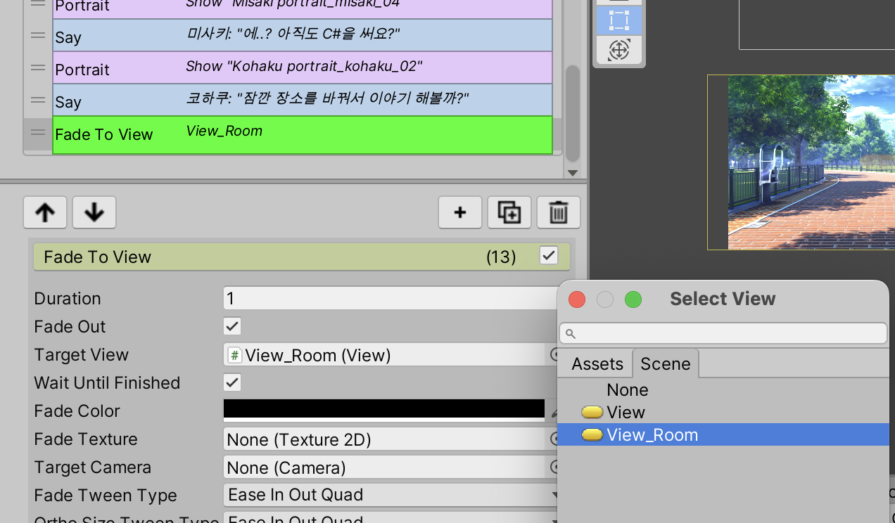 조금 자연스럽게 배경을 바꾼 이후에 대화를 추가해 주었습니다.
