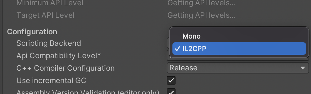 iOS나 WebGL은 따로 존재하지 않는데 기본적으로 IL2CPP로 빌드되고 있기 때문입니다.