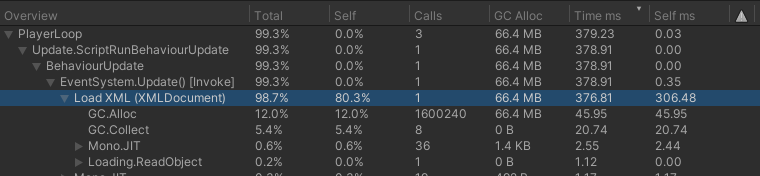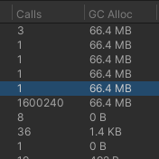 이전 글에서 작업했던 코드를 Unity Profiler에서 확인 했을 때의 스크린샷입니다.